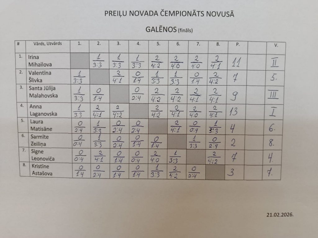 21.februārī Galēnu pamatskola sporta hallē norisinājās Preiļu novada finālsacensības novusā. Sacensībās piedalījās 10 kungi un 8 dāmas, kuri bija izcīnījuši tiesības startēt finālā pēc četriem iepriekš aizvadītiem posmiem.