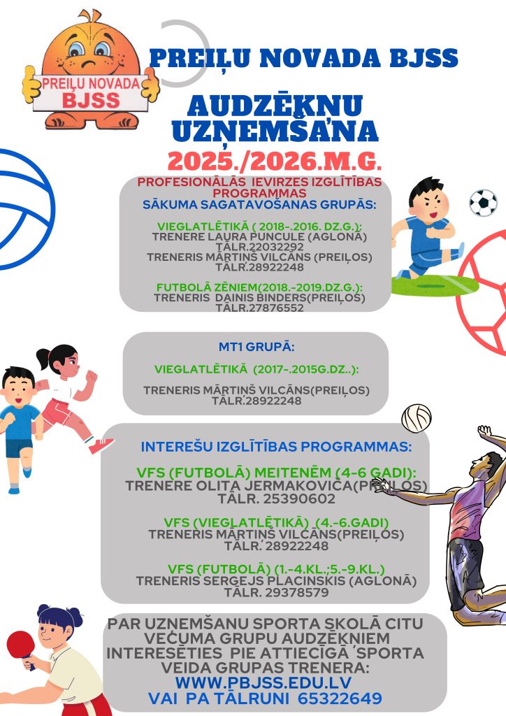 Preiļu novada BJSS audzēkņu uzņemšana 2025./2026.m.g